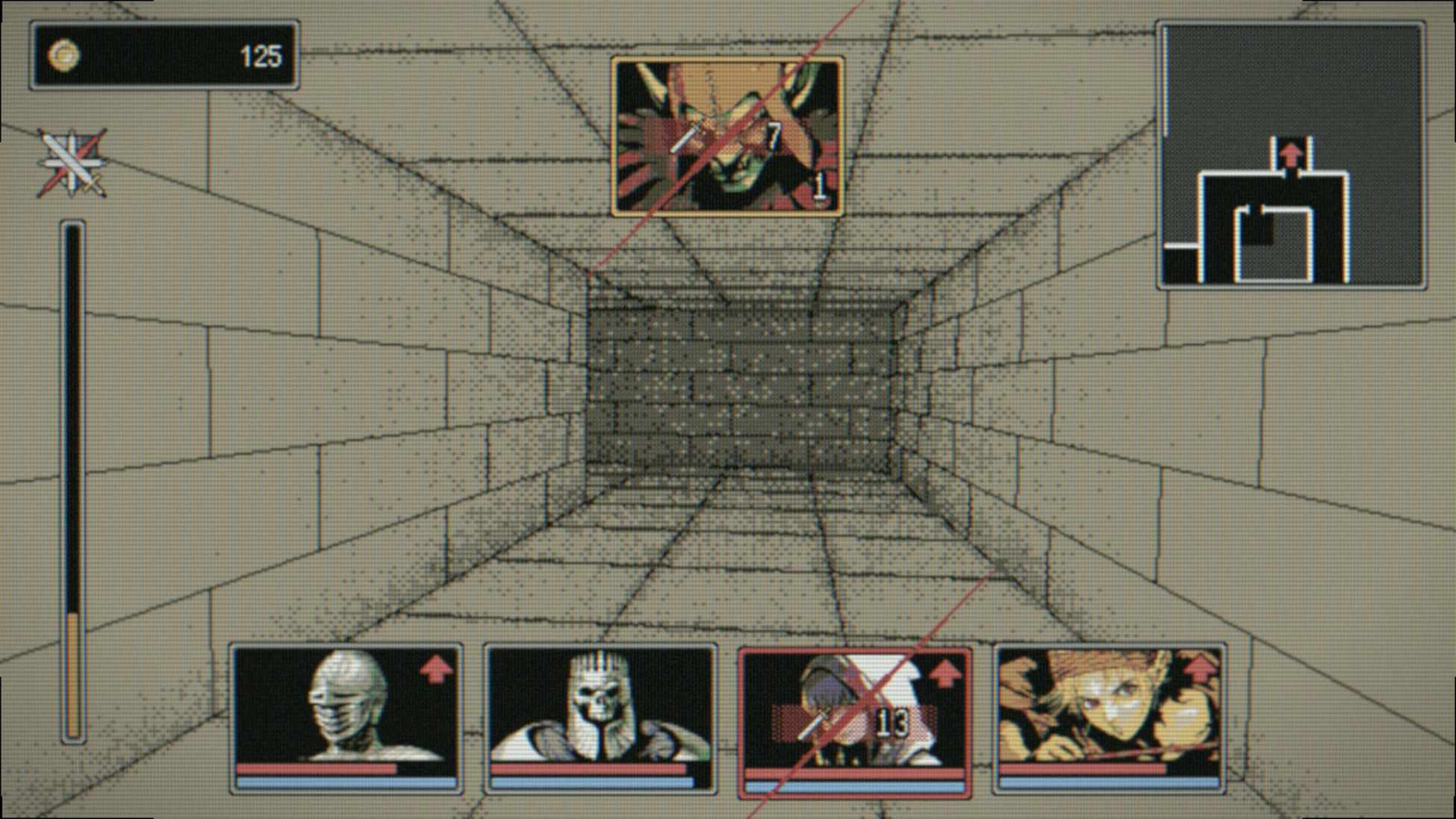 That applies to the visuals, too, as they’re as stripped down as the gameplay. The original Dragon Ruins took an almost vector-like approach to the dungeon display. Dragon Ruins II adds some depth, using visuals that had me recalling games on the Mac SE or the illustrations in my friends’ sketchbooks. Battle animations are relegated to vibrating thumbnails. In other words, not even the design interferes with the actual dungeon crawling. The dated graphics are likely to turn away some gamers, but having cut my teeth on games like this, I loved the way Dragon Ruins II looks. The simple, forlorn imagery perfectly compliments the game’s approach.